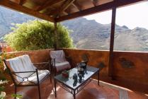 From the airport: follow "Las Palmas", then "Gáldar", then "Agaete". Drive through the village of Agaete, to catch the (only) road into the Valley, following "El Valle" or "Berrazales". Four kilometer outside the village you'll find the (first/only) road to the left, heading into the urbanización called "La Suerte" ("Luck"). First street to the right (driving up), then first choose right/straight and then when the road is 'split' take the left one up. Around the sharp bend and you'll find the entrance to Casa Dani on your right hand side. It's a green door.