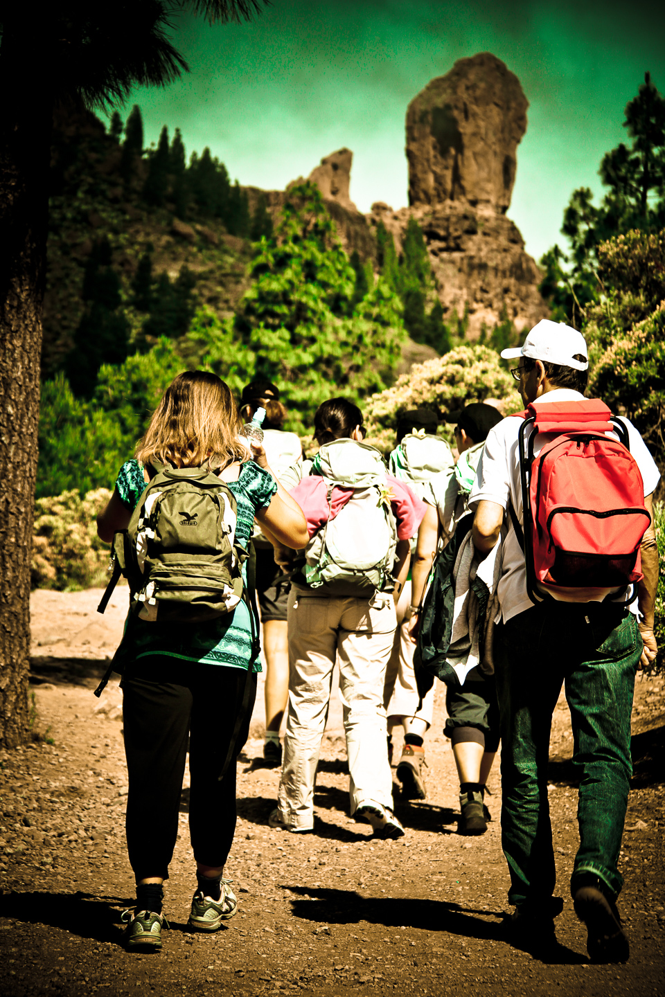 Roque Nublo is easy to get to. From the La Goleta car park (with a snack van) on the GC 60 road between San Bartolome de Tirajana (Tunte) and Tejeda, you walk over the road and up the track. It's an short if steep climb that takes about 15 minutes. Once you reach the rock platform you get a panoramic view of Gran Canaria's rugged centre.