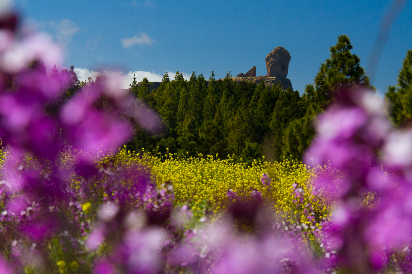The name, which translates as Cloud Rock, comes from Roque Nublo's habit of disappearing into the clouds and mist that often envelop the top of Gran Canaria. If you visit on a cloudy day it's always worth waiting for a while as the rock often pops out of the clouds for a few seconds.